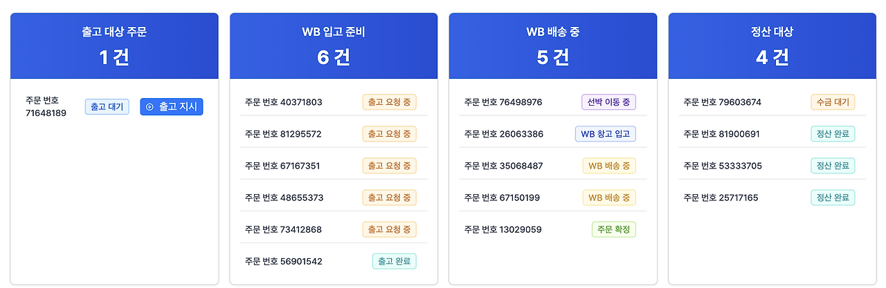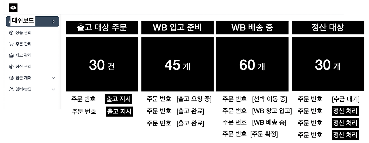 WB에서 주문이 들어오면 출고대상 주문으로 표시가 되는 거죠?
