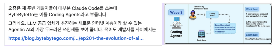 그런 점에서는 소프트웨어의 종말보다는 '코딩 에이전트의 등장'이나 '코딩 에이전트의 부상' 같은 표현이 더 마음에 드는 표현입니다. (물론, 주목을 끌기엔 엣지가 좀 없는 표현일 수 있는 있죠.)