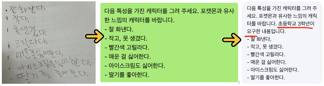 나중에 아이와 주고받은 과정을 시각화해 보니 마치 생각이 가치 사슬(Value Chain)을 타고 프롬프트가 정제되는 모습이었습니다.