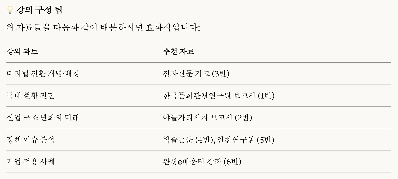 - 관광 산업의 디지털 전환이라는 맥락과 관계가 없거나 적은 내용을 과감히 생략한다.