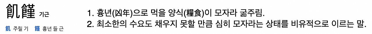 부모님 세대와 달리 기근飢饉[1]을 겪지 않은 저로써는 논리적인 인과를 따지는데 그치는 문장입니다.