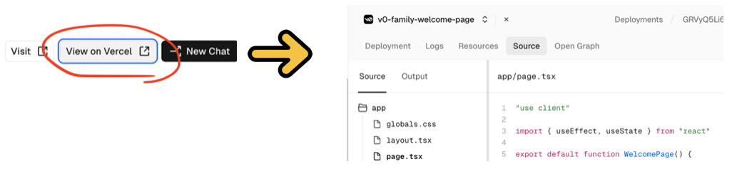일단 v0에서 코드를 보려고 시도했는데 버튼이나 메뉴를 바로 찾을 수가 없었습니다. 그래서, 제미나이에게 물었더니 엉뚱한 답으로 흘러갑니다. 다시 v0로 돌아가 차분히 살펴보다가 어쩐지 'View on Vercel'로 나가 볼까 싶었습니다.(방향으로 은유)