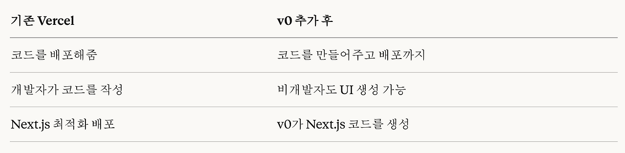 그렇네요. 이 방향이 맞았습니다. 추정에 대해서 분명히 확인하기 위해서 클로드에게 물었더니 버셀은 DX(Developer Experience)을 앞세운 클라우드 개발 도구였고, v0는 2023년 바이브 코딩 붐에 따라 자신들의 제품 기반 위에 추가된 서비스였습니다.[1]
