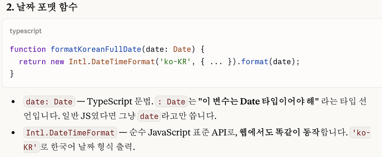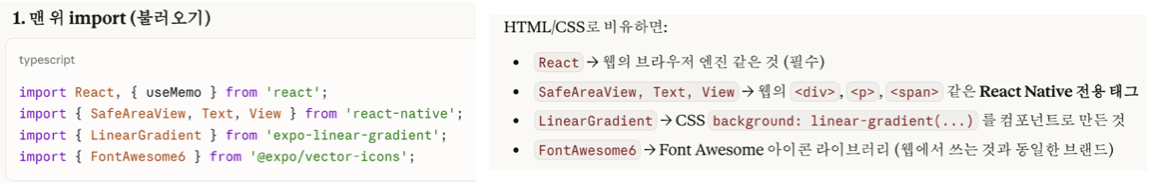 첨부한 코드를 TypeScript와 React를 잘 모르는 웹 개발자 대상으로 쉽게 설명해 주세요.