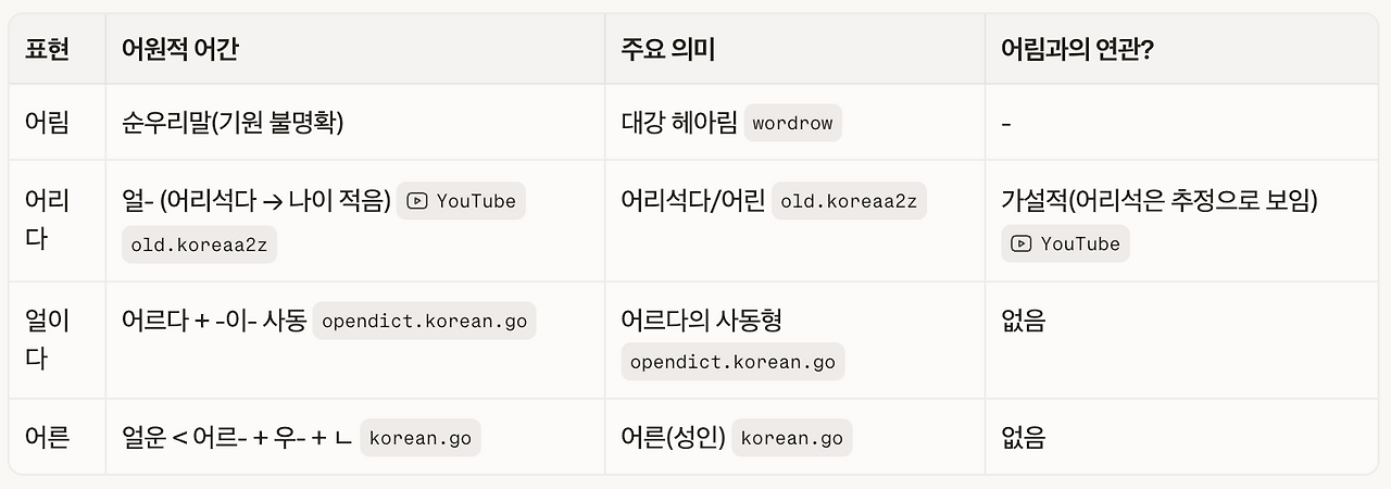 한국말에서 ‘얼’은 ‘얼다’, ‘얼이다’와 뿌리를 같이하는 말이다. ‘얼’은 물이 얼어서 얼음이 되듯이, 이것과 저것이 얼려서 하나의 얼개를 이루고 있는 것을 말한다. 옛말에서 볼 수 있는 얼다’(얼음이 얼다), ‘얼의다’(앙금이 어리다), ‘얼이다’(암수가 하나의 짝이 되다), ‘얼우다’(얼음이 되게 하다), ‘얽다’(얼기다-얼게 하다). ‘얽히다’(얼기히다-얼게 되다)에서 말하는 ‘얼’은 모두 이것과 저것이 얼어서 하나의 얼개를 이루는 것을 말한다. 2021년 10월 25일