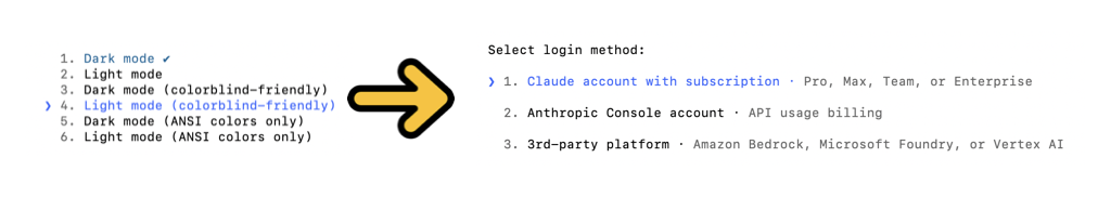 설치는 빛의 속도로 끝나서 '된 건가?' 싶었습니다. 하지만, 실행해 보니 문제없이 작동했고, 섬세하게 색상 취향을 물었습니다. 그리고, 로그인 방법 세 가지 중에 고르라고 하더군요. 제가 아는 건 1번밖에 없었습니다.