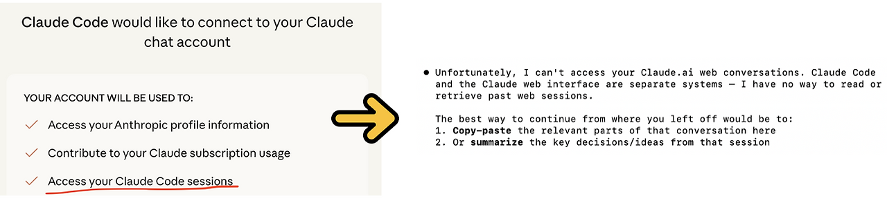 여기서 다시 혹시나 해서 클로드와 웹으로 대화한 내용을 읽을 수 있는지 물었는데, 별도의 시스템이라 그건 불가능하다고 하네요.