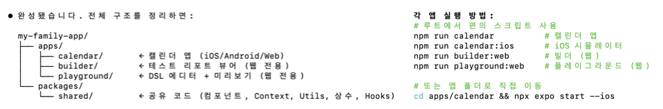 여기까지 직접 코드를 열어 보지 않고 클로드 코드를 이용해서 앞서 구상한 짜임새에 맞춰 구조를 바꾸는 리팩토링을 했습니다.