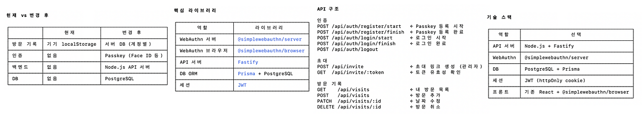 내친김에 아키텍처도 변경하고, 로그인 기능을 넣으면서 패스워드 없는 Passkey 방식을 도입하기로 합니다.
