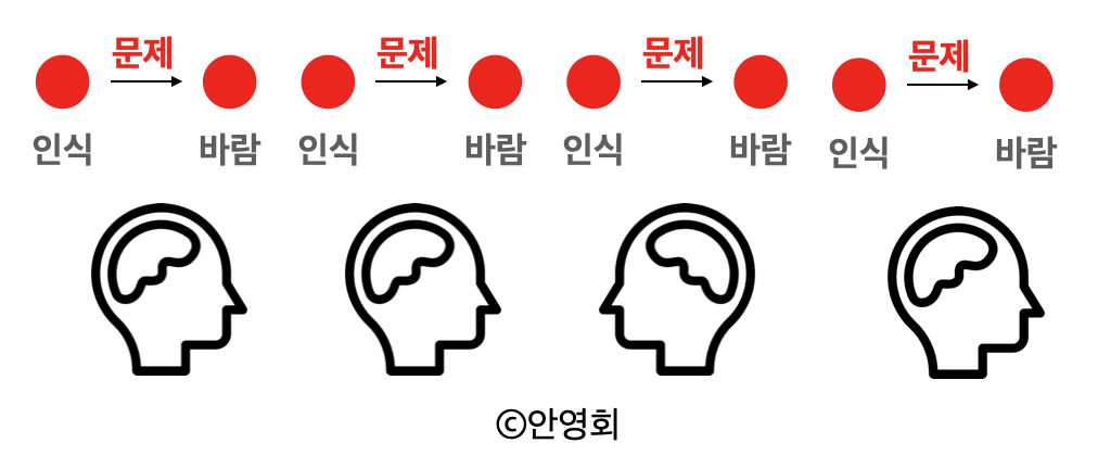 다행히 인생책 <대체 뭐가 문제야>를 읽으면서 저를 포함한 대부분의 사람들이 문제에 대한 정의 없이 허겁지겁 풀고 있고, 기존 교육 시스템 자체가 빠르게 문제를 푸는데 급급하게 설계되어 있다는 사실을 알 수 있었습니다.