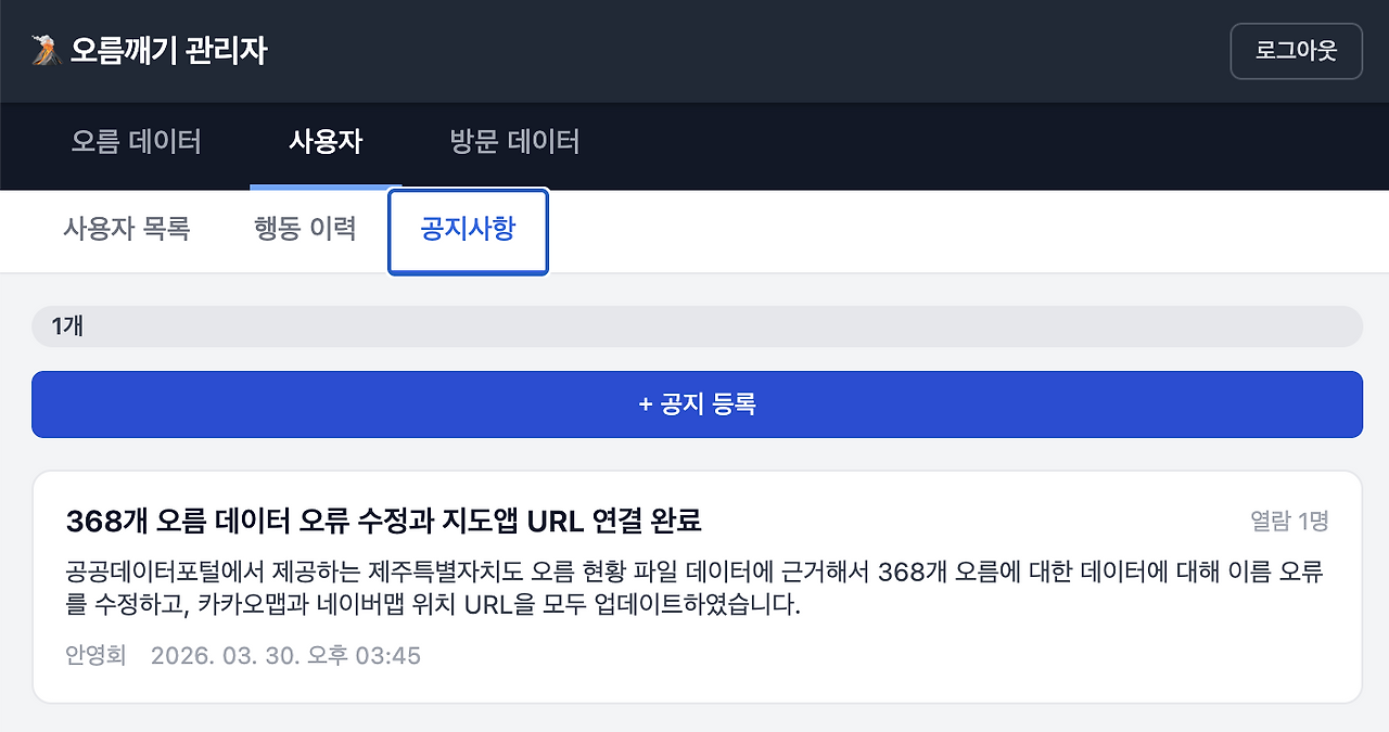 우발적으로 시작한 이 일에서 결국 내적 만족을 위해 몇 시간을 더 투자해서 데이터 정합성을 맞추고 사용자에게 오류 제보를 받아 수정할 수 있는 피드백 루프를 구현하게 되었습니다.