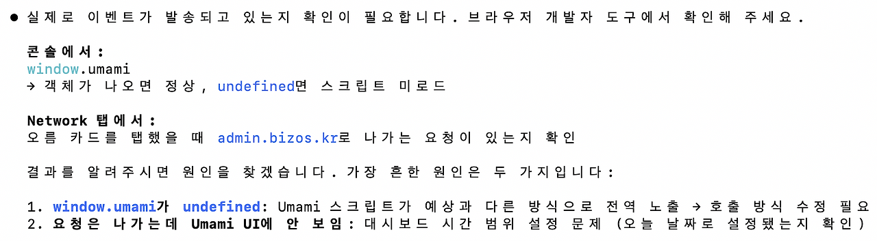 그뿐 아닙니다. 개발을 해 보면 디버깅이 가장 고통스러운 일인데, 백엔드 개발자 출신인 저는 브라우저 작동 상황을 인지하는 부분이 취약점입니다. 그렇지만, 클로드가 시키는 대로 하면 '무작정 따라 하는' 행위만으로도 크롬 개발자 도구를 이용해 디버깅을 할 수 있습니다.