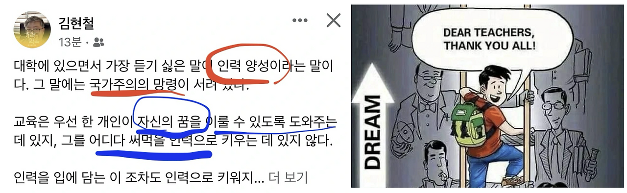 윤여경 선생님도 교육에 관심이 많으신데, 저도 그런 편입니다. 다만, 현실의 교육과는 거리다 멀다는 점에서 '자아실현'위한 대안 교육에 관심이 많다고 할 수 있겠네요.