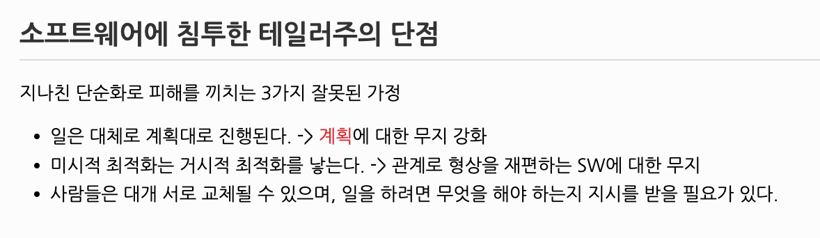 그리고 <XP 함께 읽기> 논의 일부가 떠올랐다. 지인이 말한 현상 바탕에는 이른바 테일러주의가 있다는 확신이 들었다.