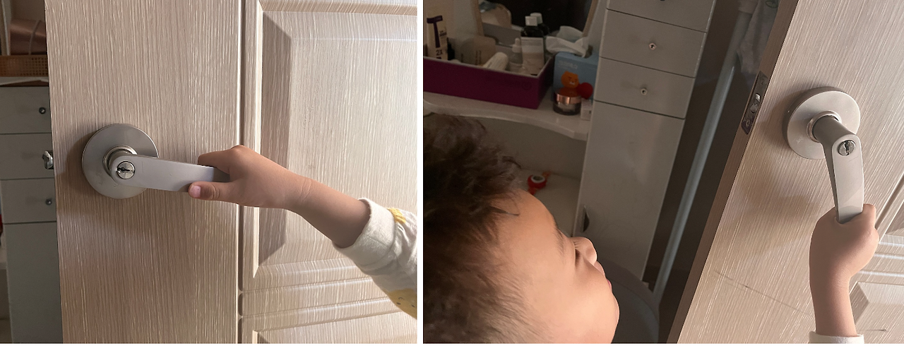 흥미로운 질문이란 생각에 아이의 질문을 따라갔습니다. 주변을 돌아보았는데 가장 먼저 문 손잡이가 보입니다. 아이에게 돌려보라고 했습니다. 시계 방향이네요.