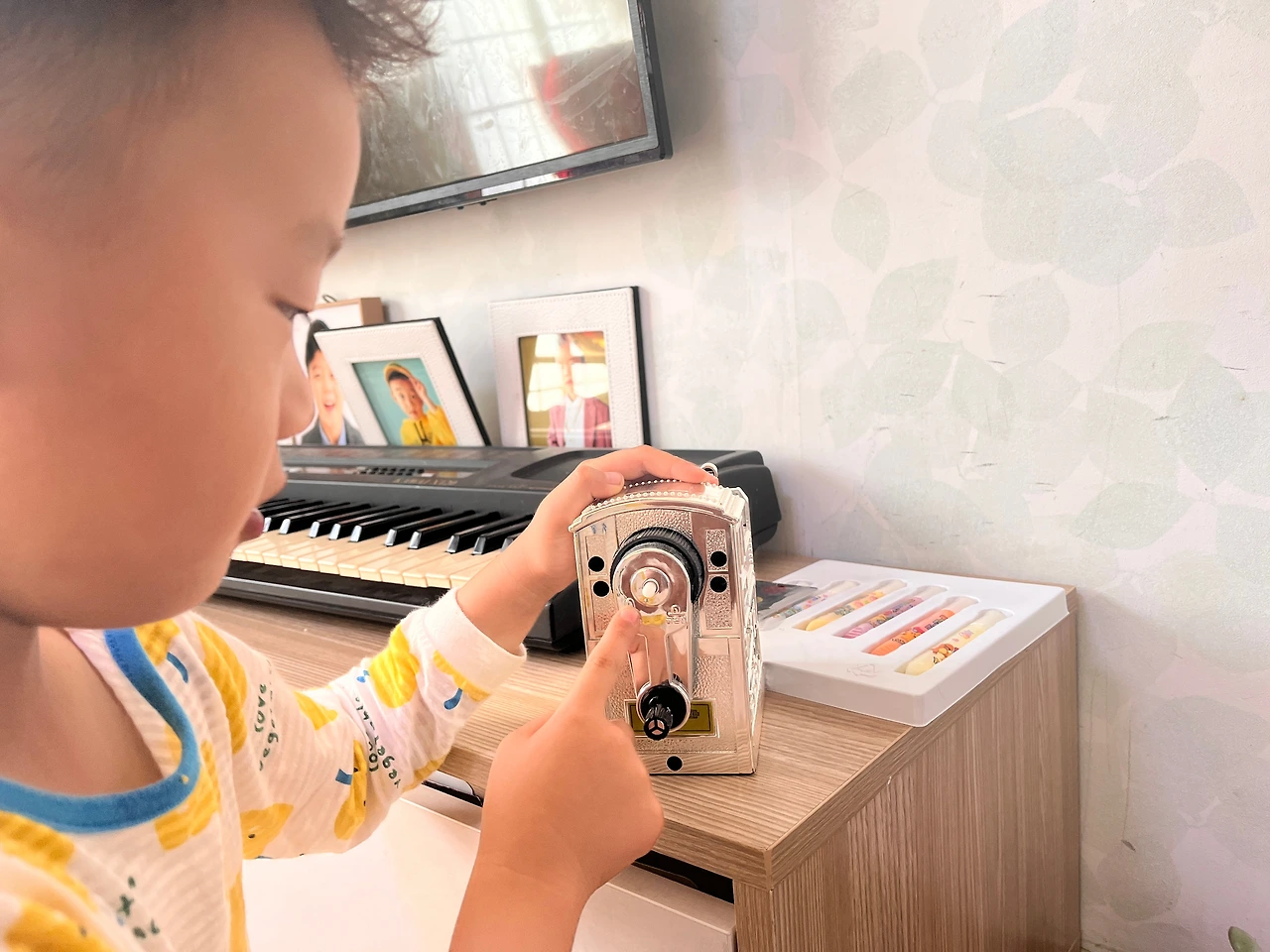 또 다른 물건을 찾았습니다. 아이의 연필깍기도 옆에 있었습니다. 아이에게 돌리게 하여 시계 방향임을 스스로 확인했습니다.