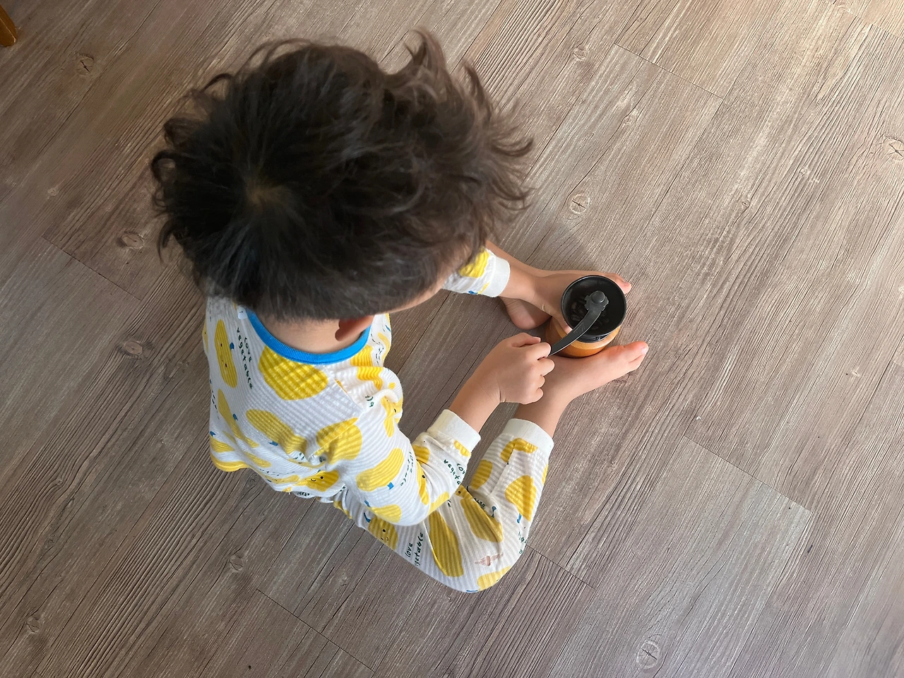 큰 애와 마침 점과 선의 관계에 대한 즉흥적인 복습을 하던 바로 그 아침에 둘째가 커피콩을 가는 아빠를 돕겠다고 했습니다. 아이는 멈출 때마다 분쇄기를 돌리는 방향을 몰라 이쪽저쪽을 시도해서 제가 알려줘야 했습니다.