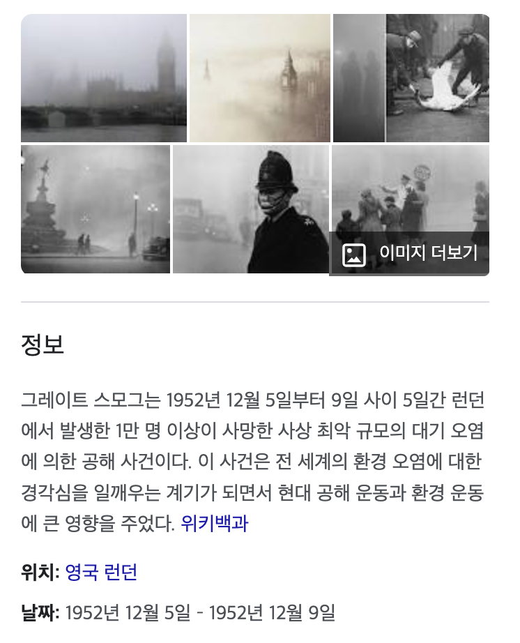 요즘 뉴스를 들어보면 영국은 경제적으로 쇄락의 길을 걷고 있다. 요즘 스모그로 뜨던(?) 나라는 중국 대도시였지만, 이런 양상도 계속 변모한다.