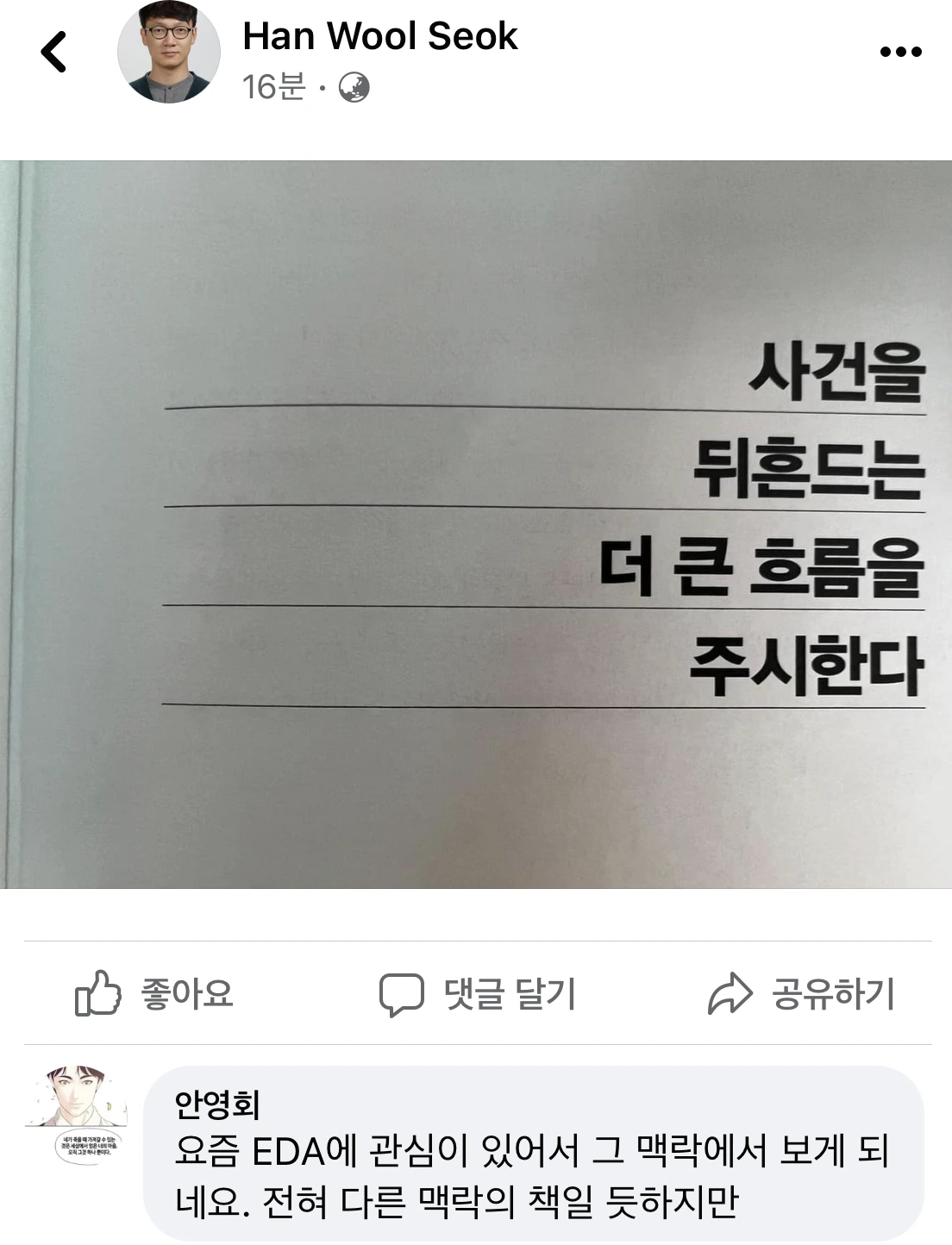 이 글은 프로그래밍에 대한 소재를 다뤘지만 개념적이다. EDA에 대해서 생각을 한발 더 나아가기 위한 글이다. 다음 단계로 나아갈지는 동료들과의 협업과 나의 일상에 달렸다.