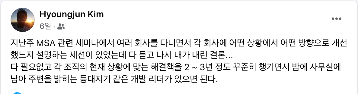 그는 개발리더를 특정하는 말이었지만, 내 생각에 변화를 수행할 때 필요한 리더의 필수 덕목이라고 해도 틀리지 않는다. 귓가에 이런 소리가 들려오는 듯하다.