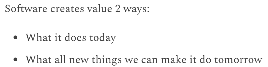그에 대한 부연은 말로 하기 너무 길어서 미루려고(혹은 포기) 했는데, 우연하게 구독하는 Kent Beck의 글 에서 마침 <Structure & Behavior>라는 제목이 눈에 띄어 읽었다. 막상 읽어보니 내가 하려던 말과는 다른 방향으로 쓰인 글이지만, 흥미 있는 포인트가 있었다.