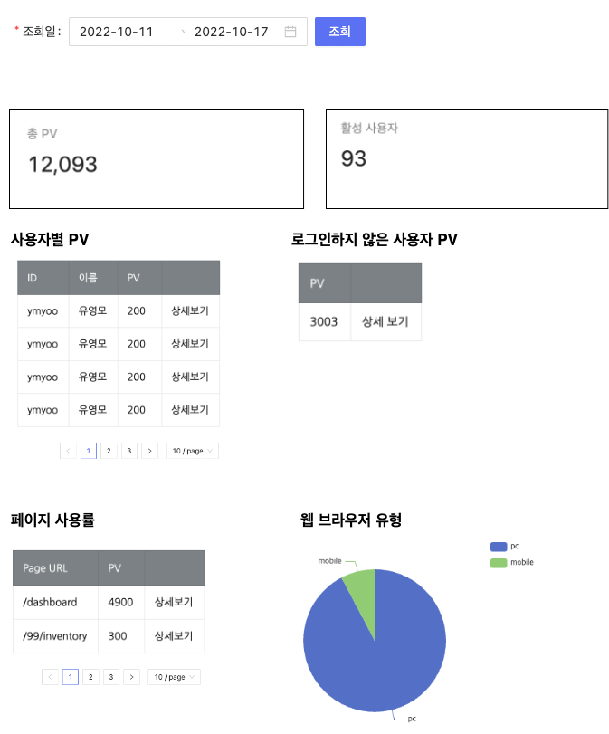 이 질문을 푸는 과정에서 다시 두 달 전의 그 추적성(Traceability)이 살아난 것이다. 나는 동료에게 가장 빠르게 구현할 수 있는 방법으로 만들어보라고 아주 간략한 글로 요청을 했다. 그는 다음과 같은 내 의도와 다른 화면을 만들었다.