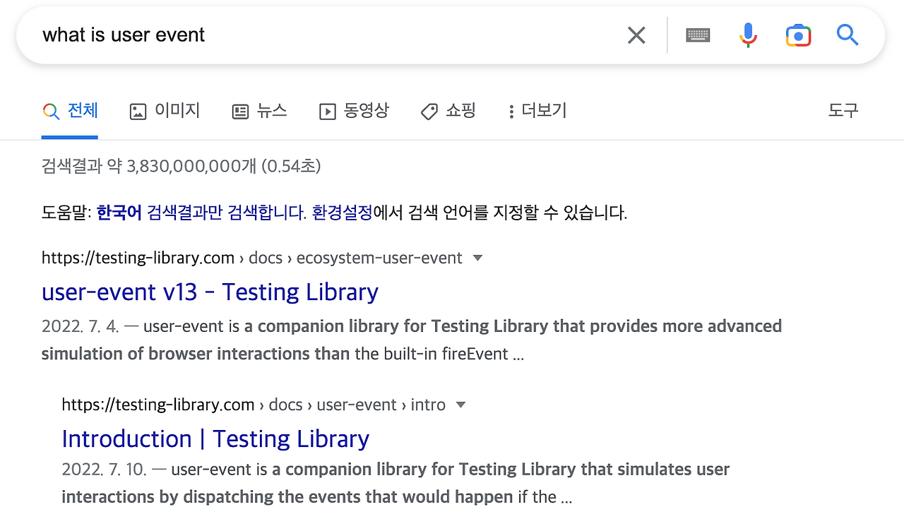 이번에는 user event로 구글링 해본다. 일단 첫 페이지 요약이 원하는 맥락과 어긋난다.