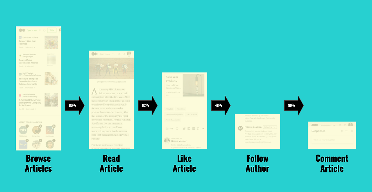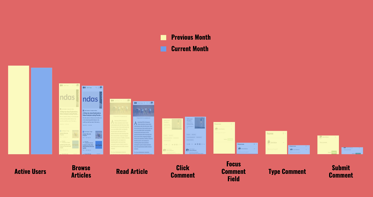 모두가 Funnel visualizations를 쳐다보는 장면을 떠올린다. 눈에 보이지 않던 사용자 흐름이 시각화되어 시원하지만, 그다음에 대단한 영감이 흘러오지 않는다. 한번 만들기는 어렵지만, 만들고 나면 (기대나 노력이 커서인지) 뒤이어할 일이 떠오르지 않을 때가 많다. [2]