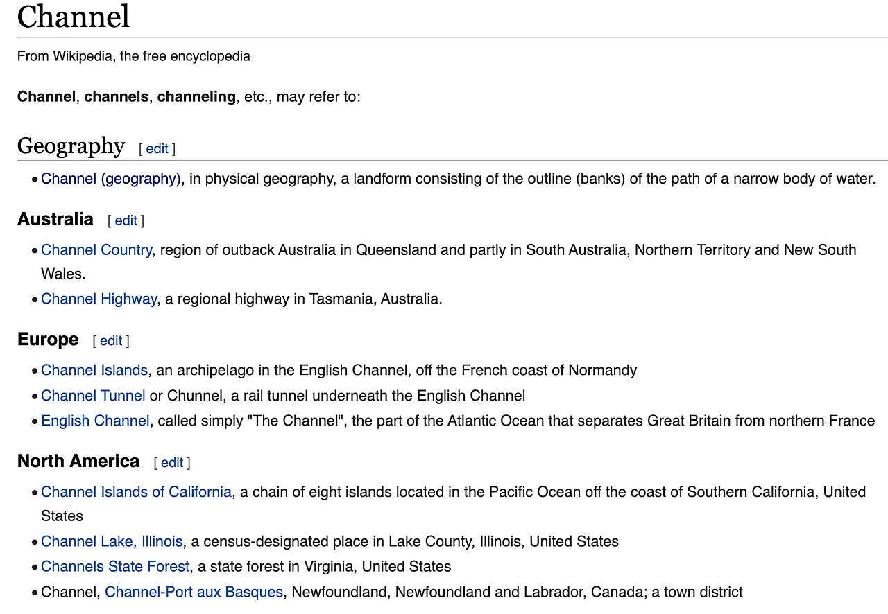 그렇다면, 내가 오해나 우연에 의해 떠올린 수로 혹은 채널은 어떤 개념인가? 역시 위키피디아를 찾아보자. 일단 물리적인 지리(지리학과 지질학 차이는 뭐지?) 개념이다.