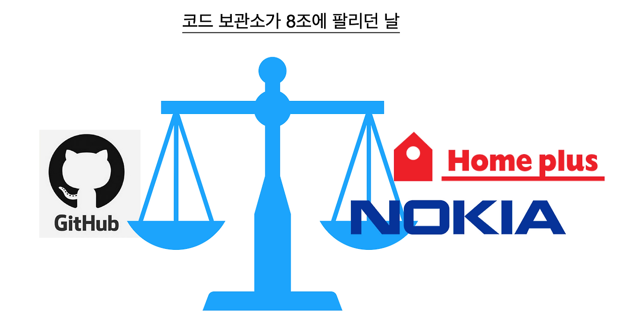 <소프트웨어를 모르는 대한민국 기업의 위기>를 다시 보니 아래 그림으로 묘사했던 8조 원 매각 금액에 대한 생각이 대전환기를 어떻게 받아들일지 힌트가 될 듯하다. 생각의 맥락을 보여줄 테니까. 나는 개발자로서 깃허브의 유용함을 알지만, 비교할 수 있는 대상을 몰랐다. 그래서 popit에 글을 쓰던 때에 찾아본 것이다.