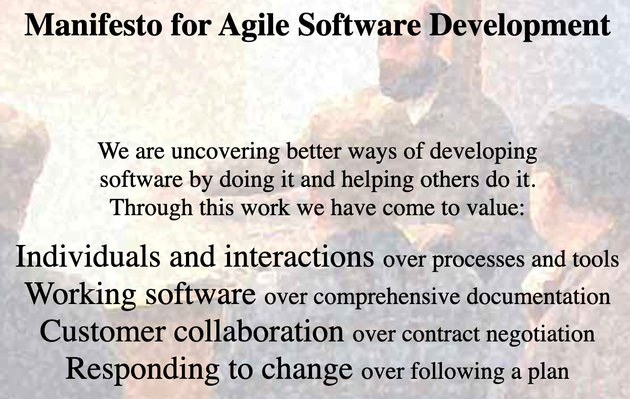 이제 20여 년 전에 애자일 선언문에 계약보다 고객과 협업(Customer collaboration)이 중요하다고 강조한 내용을 소환해보겠습니다. 검수라는 계약 방식에 품질이 희생되는 일을 20 년 전에 막자는 선언이 있었습니다.