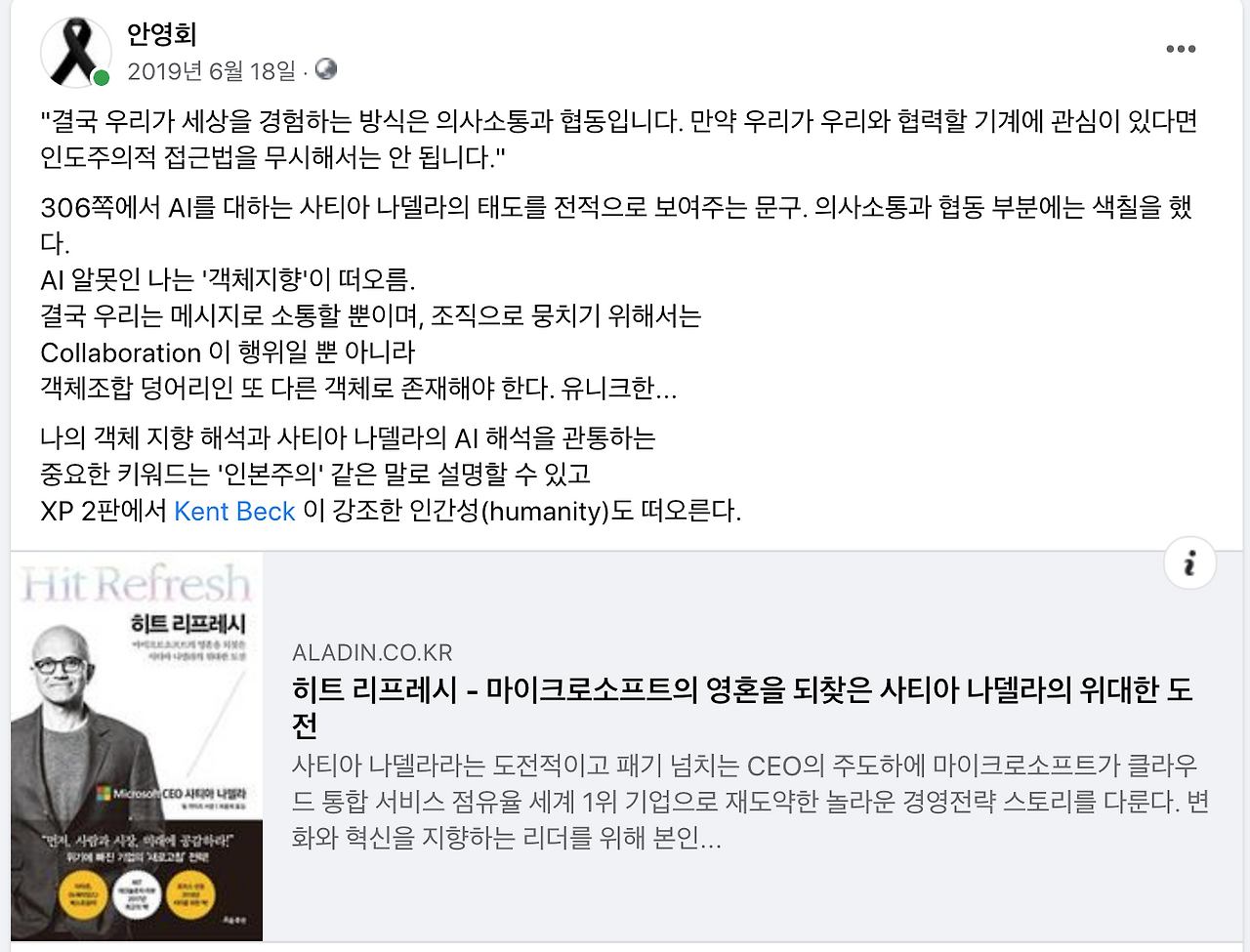 나는 단박에 사티아 나델라의 <히트 리프레시>에서 그가 하키 주장 경험을 떠올려 MS의 관료주의와 사내정치를 혁파해나간 사티아 나델라의 이야기가 떠올랐다.