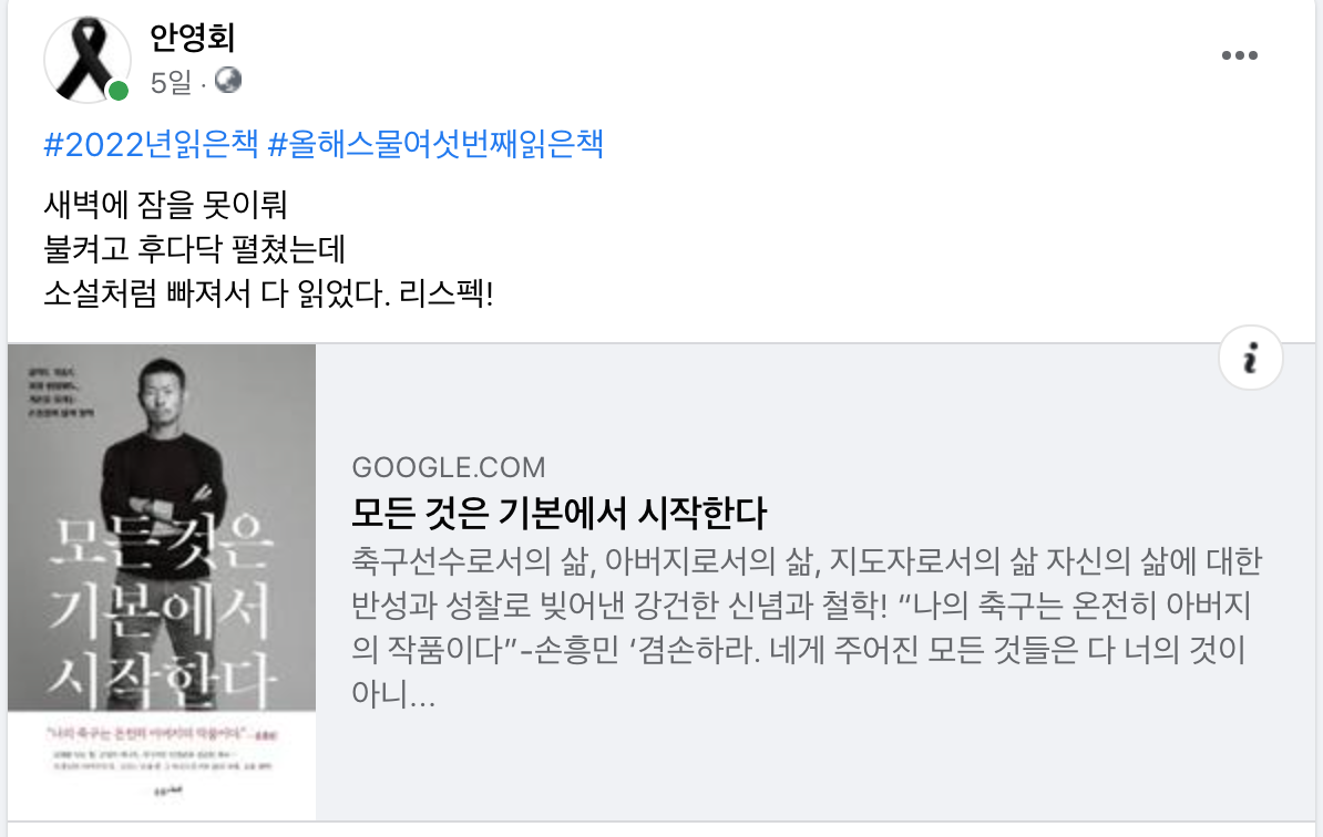 대한민국 대표 축구스타 손흥민을 키운 손웅정 님의 책 제목이다. 비교적 책을 느리게 읽는 나지만 몇 시간 만에 다 읽을 수 있던 책이다.