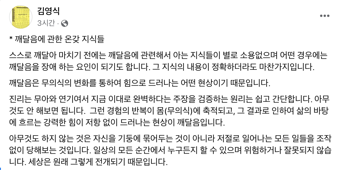 시골 농부 김영식 님의 페북 글이 한동안 제 마음과 눈길을 잡아끌었습니다.