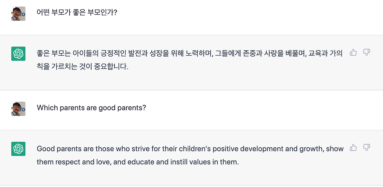책은 머리말에 주제가 될 6가지 질문을 글머리 목록으로 간결하게 제시한다. 요즘 지인들이 워낙 ChatGPT에 대해 말을 하길래 이 질문에 대해 ChatGPT는 어떤 답을 할지 궁금해져서 해봤다. 여섯 개 중에 세 개만 한글과 영문으로 물었는데 대동소이한 느낌을 줬다.