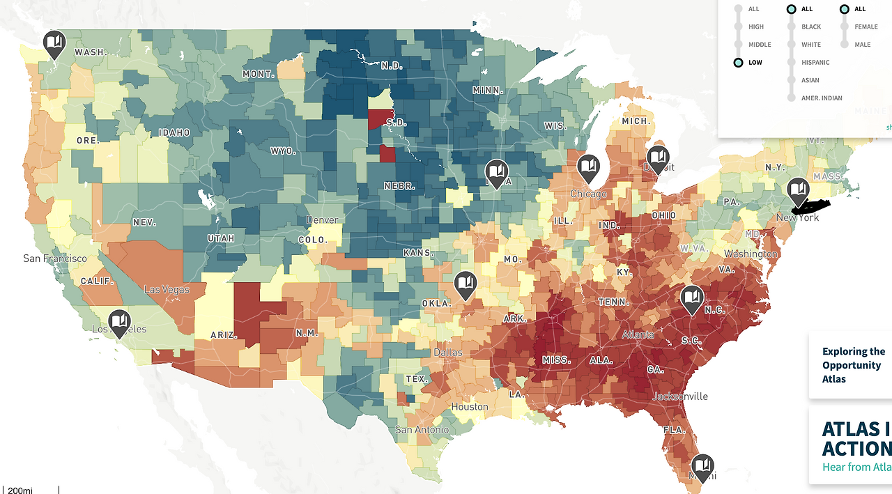 다시 책으로 돌아가자. 아래 사진은 The Opportunity Atlas에 데이터로 만들어진 기회의 지도 첫 페이지를 찍은 이미지다.