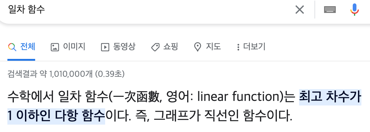 다만, 일차(一次)라는 표현과 선형(linear) 사이에 연관성이 궁금했는데 아직 분명하지 않은 듯하여 일차 함수를 키워드로 구글링을 합니다.