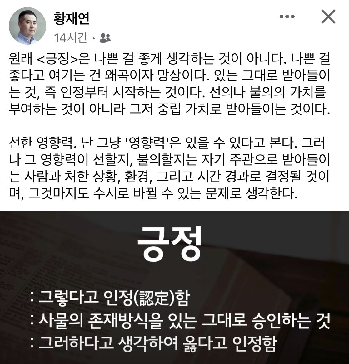 <이젠 어른이 돼야 해, 소년>편에서 인용했던 긍정의 뜻도 연관이 있습니다. 통제 바깥의 요소들을 섣부르게 판단하지 말고 그대로 인정하는 일입니다. 긍정은 그런 것이라고 믿습니다. 그러고 나서 내 반응(my response)만 결정해야 행하는 것이죠. 얼핏 보면 비슷한 듯하지만, 인식의 측면에서는 상당한 차이가 느껴집니다.