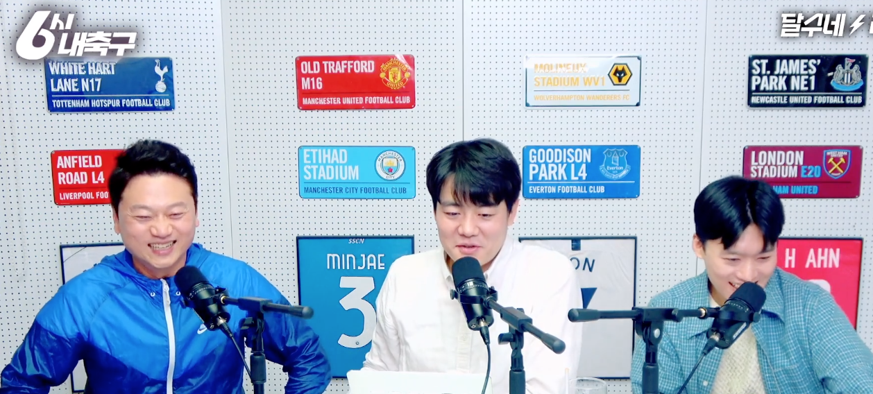 직감으로 추정한 것이지만 달수네 내용을 보면 박문성 해설위원이 주도하는 미디어입니다. 그중에 가장 세련된 포맷이라 느껴지는 콘텐츠는 6시 내축구인데, 가운데 언론사 출신의 일명 '빨대형'이 서고 양 옆에 박위원과 페노가 등장한다.