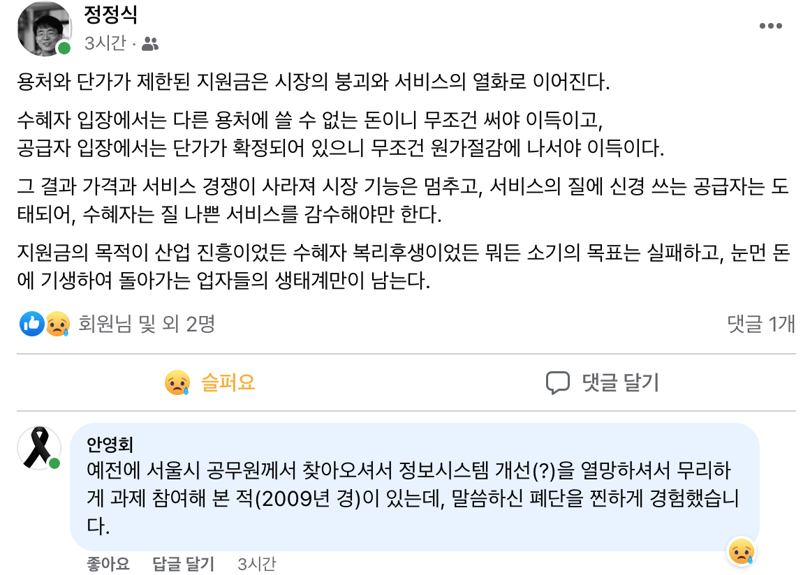 마침 몇 시간 전에도 페북에서 관련 있는 대화를 나눴죠.