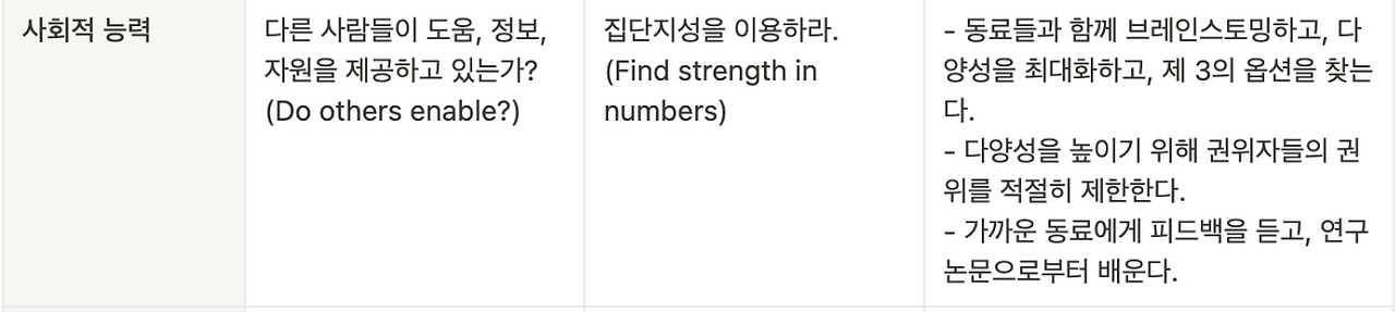 그래서 사회적 능력 영향력 원천 모델의 전략의 문구는 저에게는 너무나 친숙하여 도리어 흥미를 끌지 못하는 내용인 듯합니다.