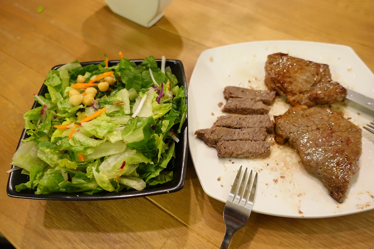 미국 여행을 떠나오기 전 걷기 내기에서 졌던 G가 꿀맛같은 저녁을 준비해줬다. 소고기 스테이크로 채운 배도 든든하고 숙소도 잘 찾아왔으니 마음도 편해졌다.