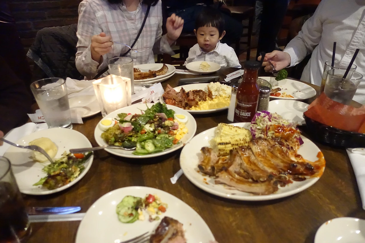 저녁을 먹고 다시 3시간을 달려 샌디애고로 돌아가야하는 S의 가족을 생각하면 시간이 부족했다. 우리는 각자 챙겨 온 선물과 그녀의 어머니가 전달 부탁하신 아기 음식도 주차장에서 엉거주춤 교환했으며, 급하게 셀카도 주차장에서 두 장 찍었다. 짧은 식사 동안 우리는 빠르고 쉴 새 없는 수다를 떨었다.
