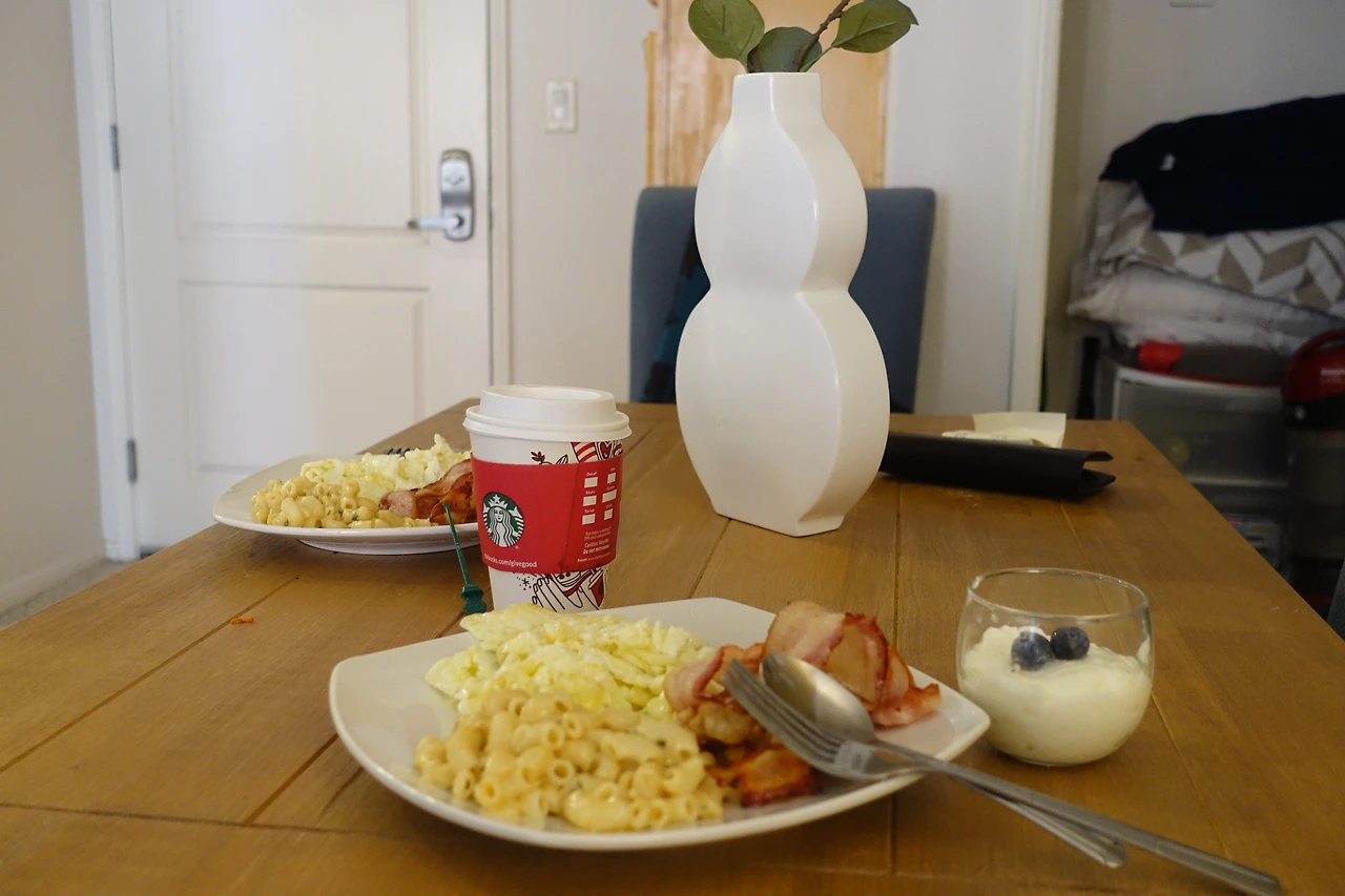 어제 장 봐두었던 레트로트 맥앤치즈도 베이컨도 성공적이었다. 다만 달걀 한판을 사기에는 좀 부담스러워서 우유팩에 담겨있는 Liquid Egg를 샀는데 알고 보니 Liquid Egg "White" 였다. 의도치 않게 노른자는 쏙 빼고 건강식 스크램블 에그를 먹게 되었다.