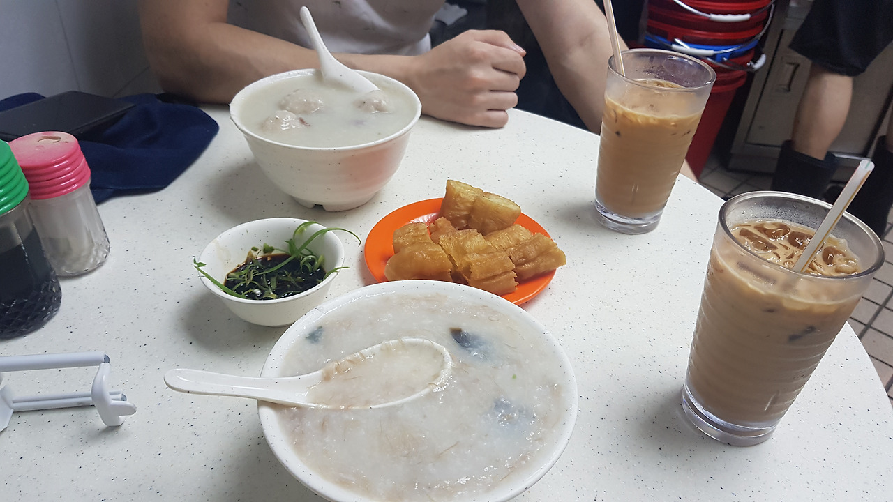 차찬텡 집은 아니었지만, 홍콩 사람들의 Comfort Food로 불리는 죽도 홍콩식 아침식사에 빼놓을 수 없는 메뉴다. 우리나라에서는 닭죽이나 전복죽을 제외하고는 죽이 아픈 사람들의 메뉴였다가 언제부턴가 본죽이나 죽이야기와 같은 프랜차이즈들이 생기면서야 평상시의 메뉴로 자리 잡고 있는 정도인 것 같다. 홍콩에서는 골목골목 어렵지 않게 죽 전문집을 찾아볼 수 있었을 뿐만 아니라, KFC와 같은 외국 프랜차이즈점에서도 죽을 판매하고 있다.