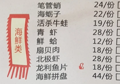 海鲜拼盘 (hǎixiānpīnpán) : 해산물 모듬