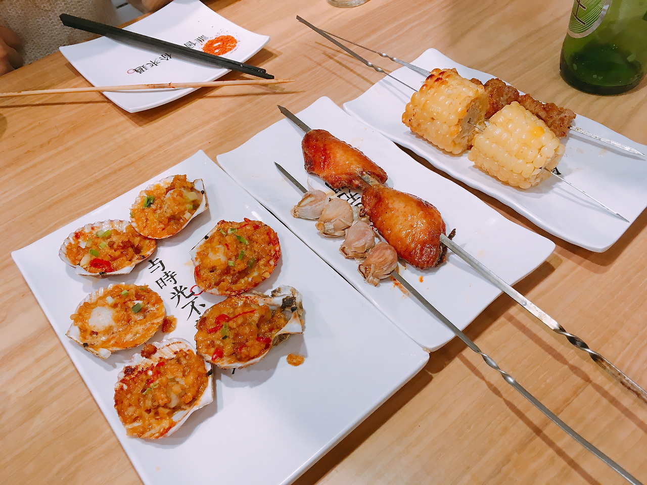 이상하게도 저녁 9시가 되자 연태의 많은 가게들이 문을 닫는 듯 보였다. 돌아다니는 사람도 많이 없었고 거리가 한산했다. 연태대 번화가 주변은 좀 달랐을까? 가까스로 밤 열 두시까지 영업하는 가게를 찾았는데 다행히 2차로 가기에도 적당한 메뉴, 꼬치집이었다.