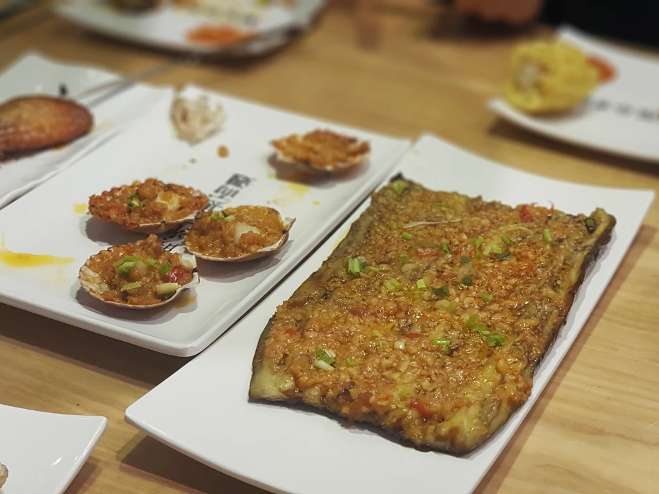 蒜蓉烤小扇贝 (suànróng kǎoxiǎoshànbèi): 다진 마늘 양념을 한 가리비(扇贝) 구이