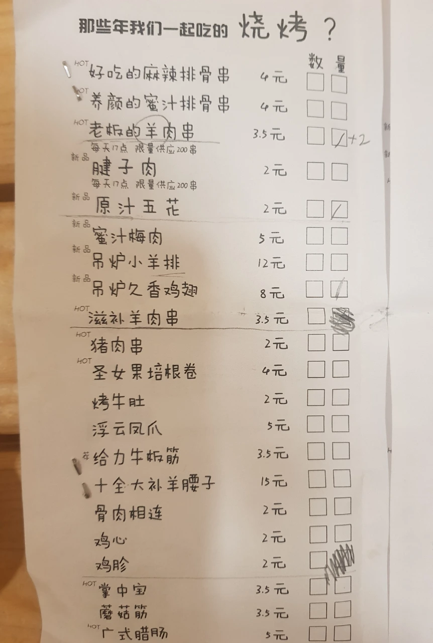 腱子肉 (jiànziròu): 다릿살 꼬치. 보통 중국 요리에서 고기(肉)라고 적혀있고 어떤 고기인지 쓰여있지 않으면 대부분 돼지고기라고 하는데, 꼬치류에도 적용되는 이야기인지는 모르겠다.