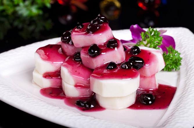 蓝莓山药 (lánméishānyào) : 블루베리(蓝莓) 소스를 참마(山药)에 곁들인 반찬